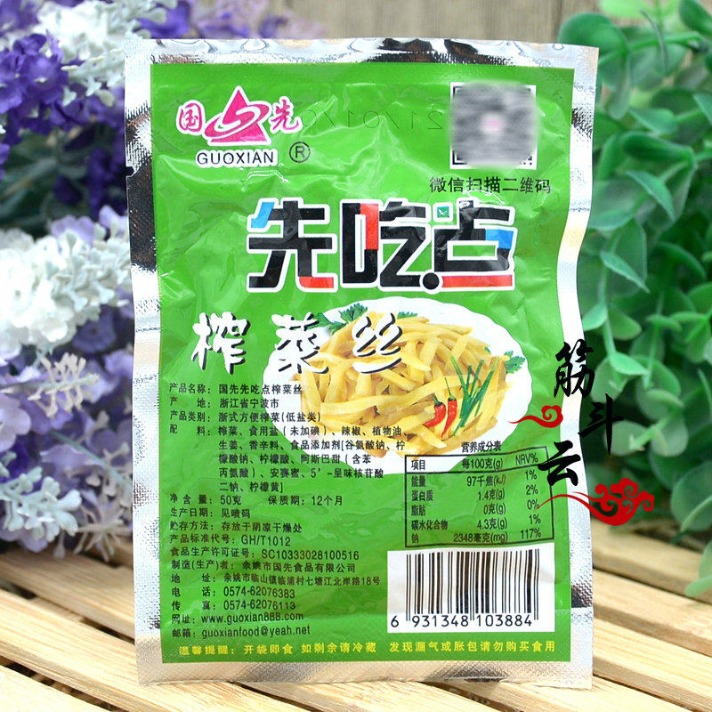 National First Pressed Vegetable Silk 50g Pouch Packaging Slightly Spicy Salty Pickle Dish Pickle Students Breakfast with porridge Ready-to-eat Pickle