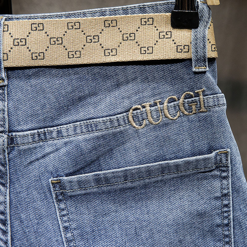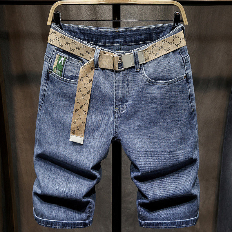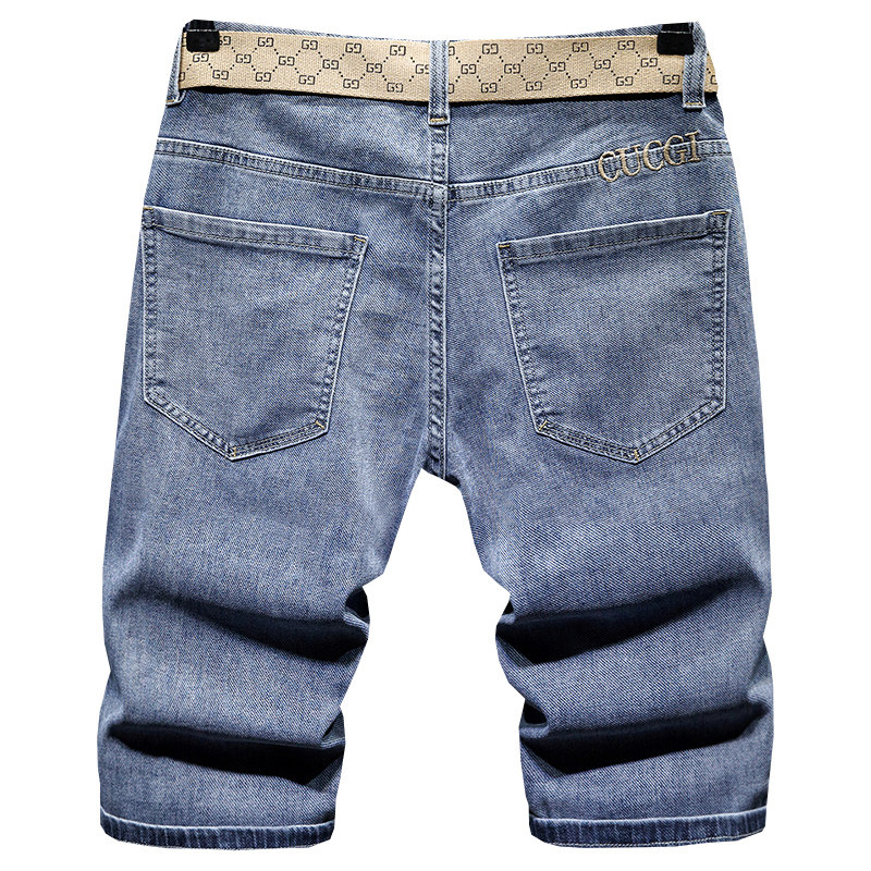 Summer thin Tide Card Denim Shorts Male 100 Lap Straight Barrel 50% Pants Men's Summer Men's 50% Pants Men Pants Horse Pants