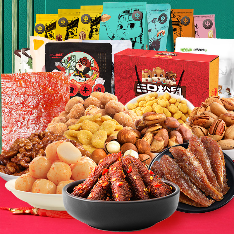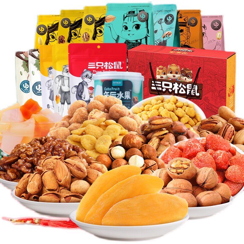 Three Squirrels Nut Snack Spree Dried Fruit Package Combination Mixed package Gift Daily Nut Macadamia nuts