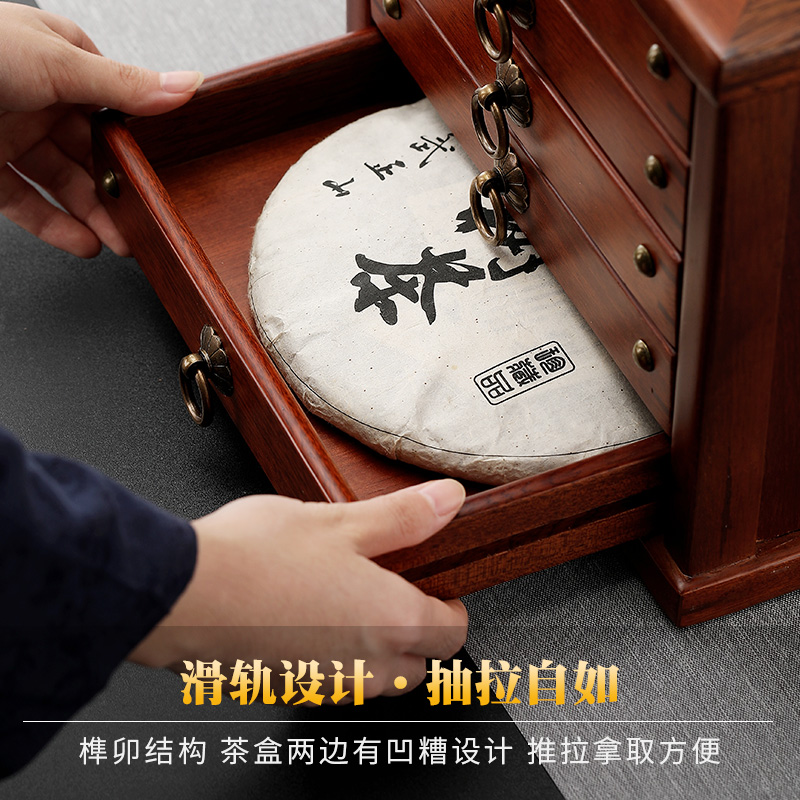 Pu-erh cake containing box flower pear solid wood multilayer drawer tea-way accessories tea package accessories tea packaging storage box