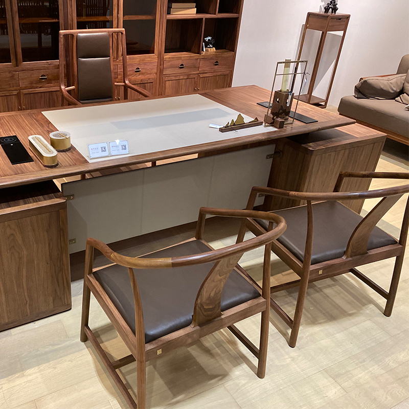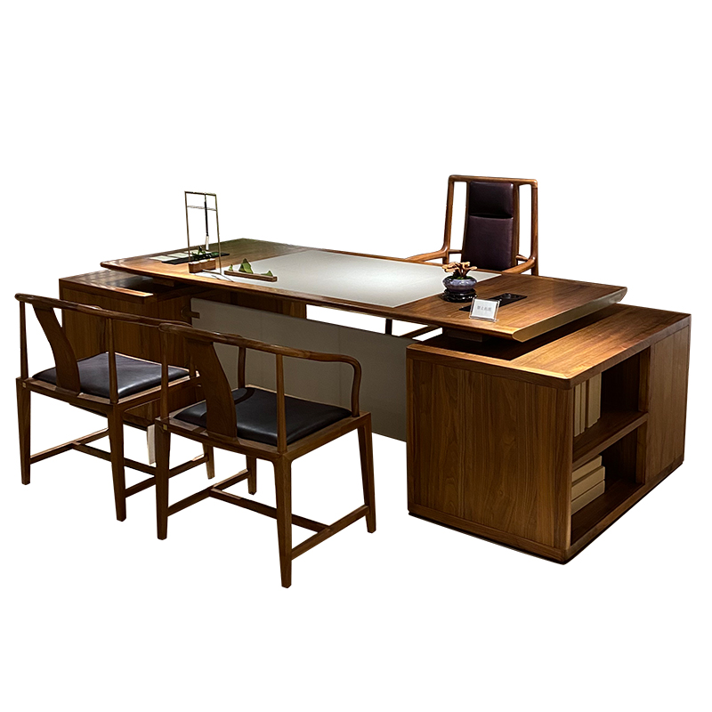 New Chinese Black Hu Peach Wood Large Bandai Solid Wood Desk President Boss Table Chairman Desk Chair Combination