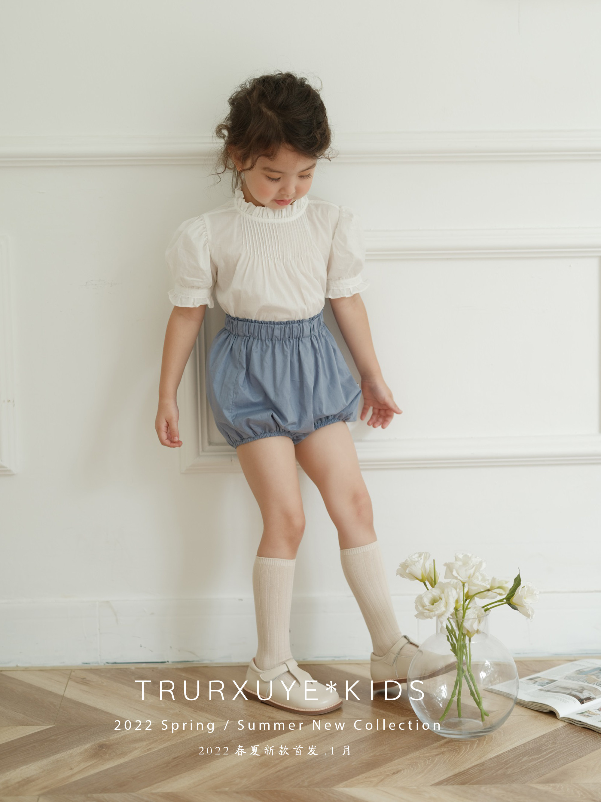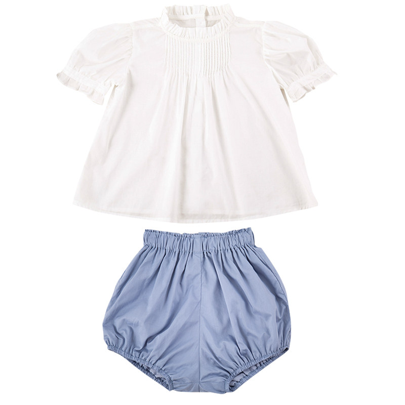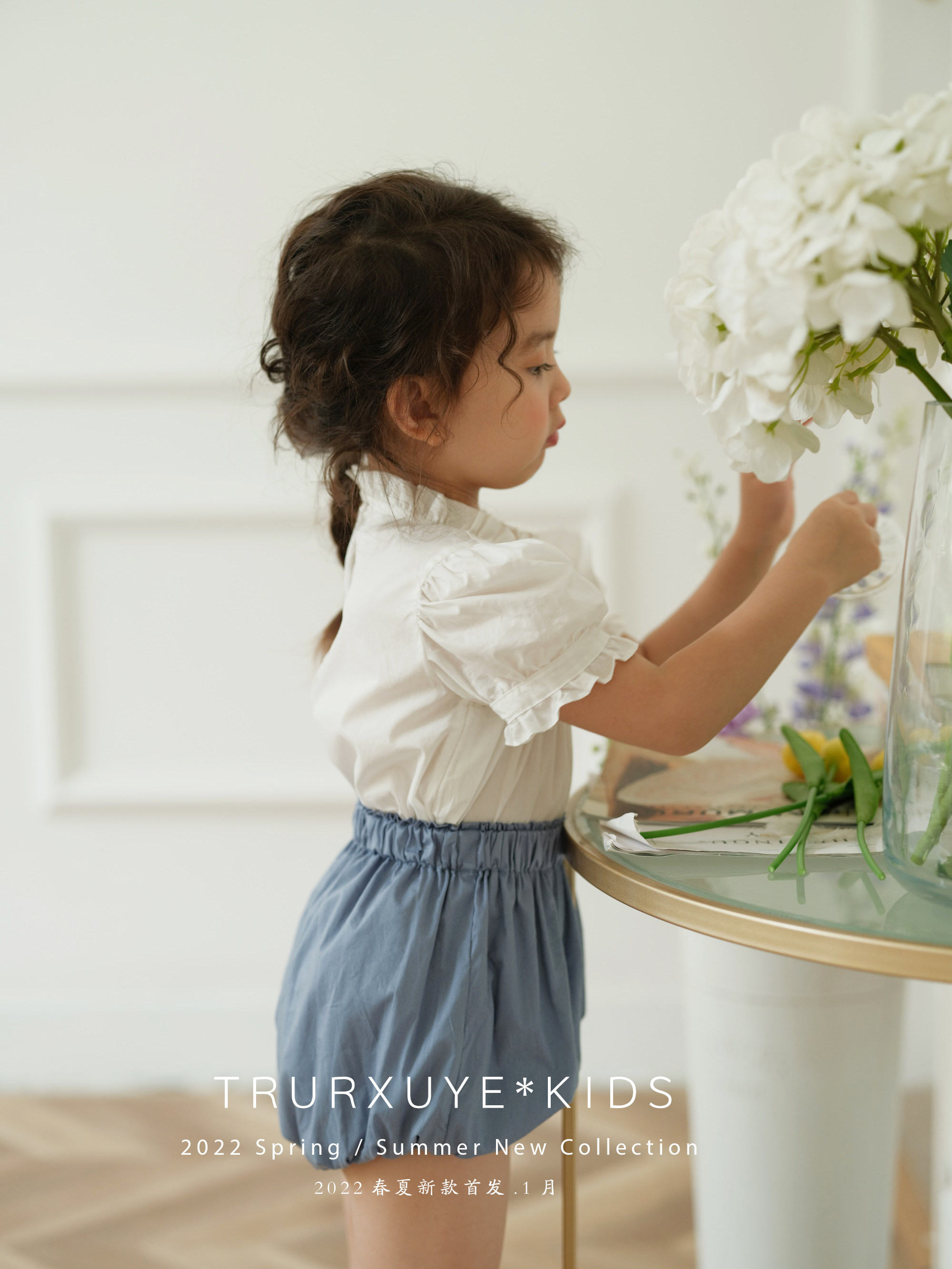 Chuxu 2022 Summer Gentle Girls Small Stand Collar Bubble Short Sleeve Shirt Versatile Bud Shorts Two Colors Available