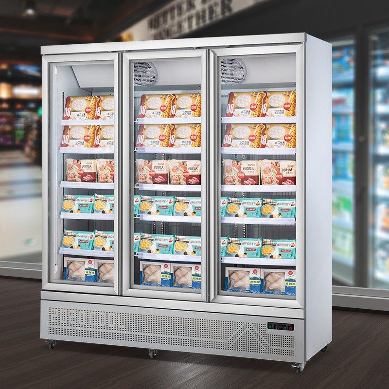 Freezer Commercial Standing Display Cabinet Frozen Freezer Supermarket Transparent Glass Ice-cream Refrigerated Large Capacity Emergency Freezer
