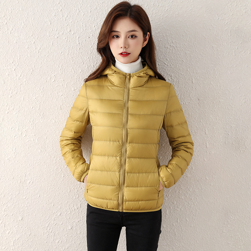 Yalu 2021 new light down jacket women's short hooded anti-season white duck down large size loose thin jacket