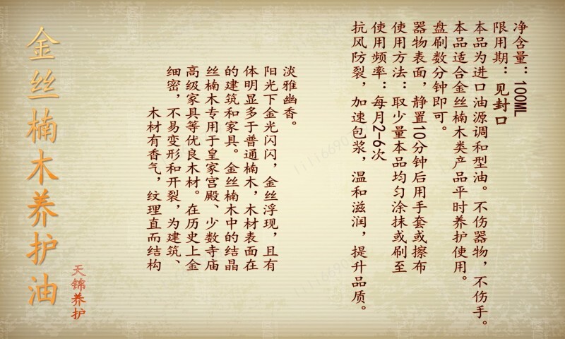 Golden Wire Nanwood Maintenance Liquid Maintenance Liquid Play string anti-cracking packaging brightens the gloomy old material green