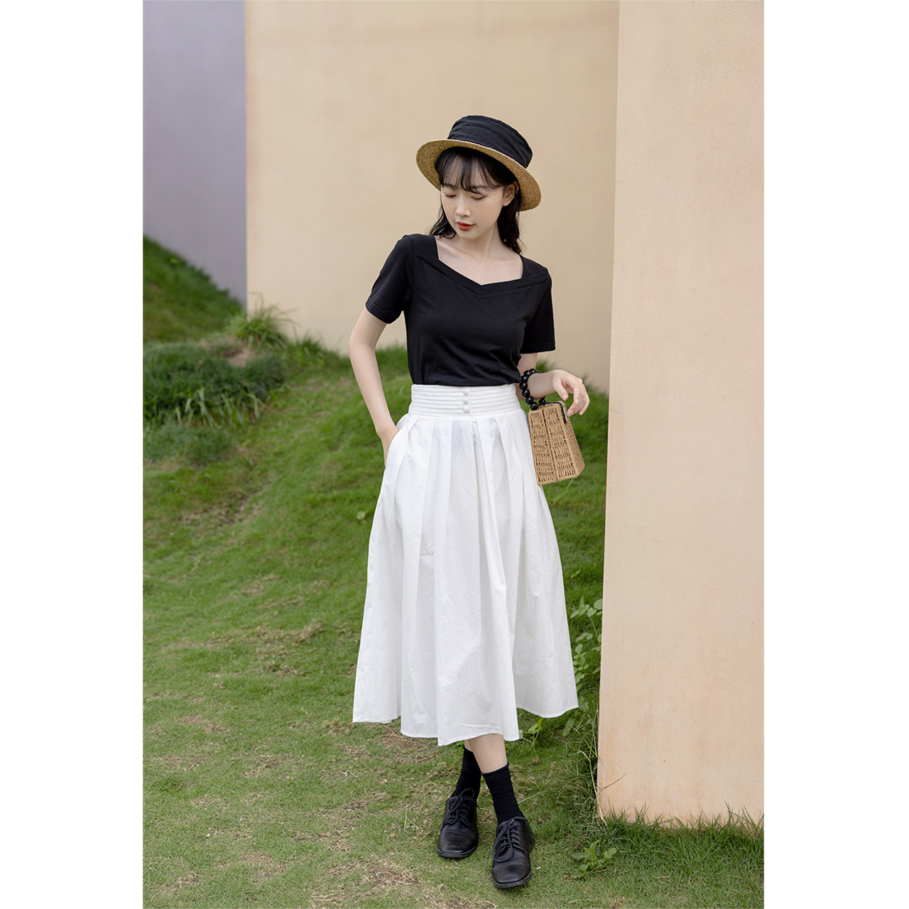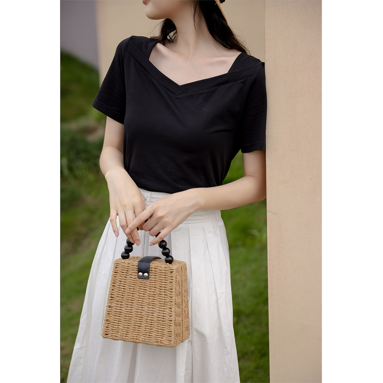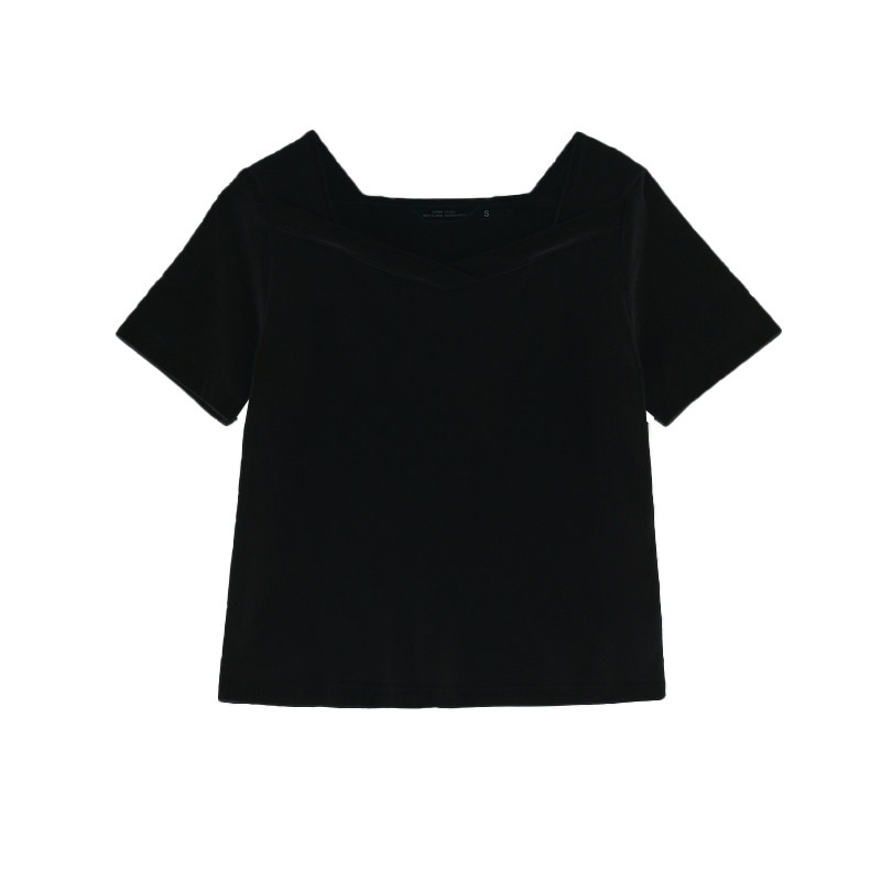 Deer South Black T-Shirt Woman Short Sleeve 2022 New Loose Positive Shoulder Half Sleeve Fastsuit Square Collar Clothes Summer