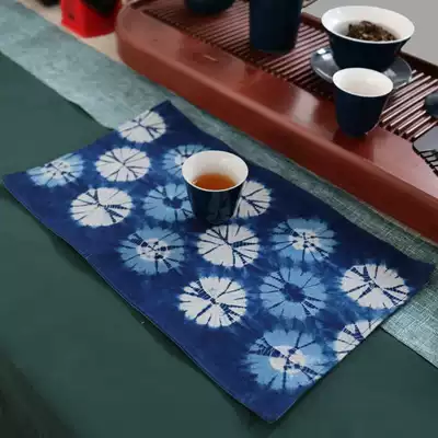 Hand tie-dyed placematte tea mat single tea mat tea ceremony equipment plant blue dyed cotton cloth tea table cloth mat insulation mat