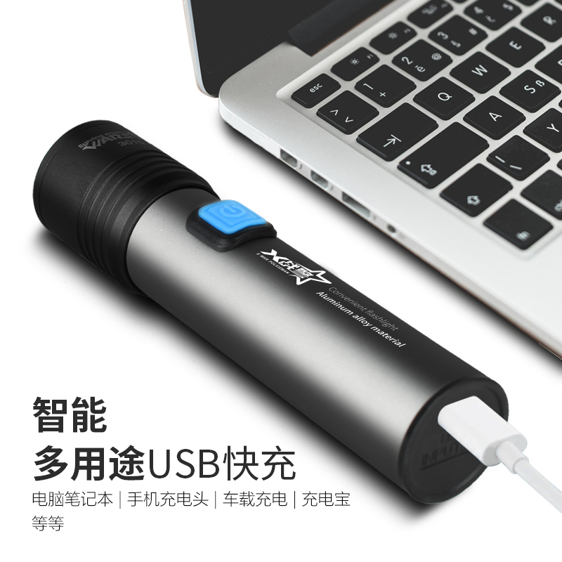 Led flashlight Strong light long-range ultra-bright multi-function charging zoom Mini small portable home outdoor work light