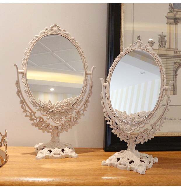 Net red shaking with the same small mirror table Desktop Retro palace Imperial Court Wind Makeup Mirror Bifacial Desktop Student Male mirror