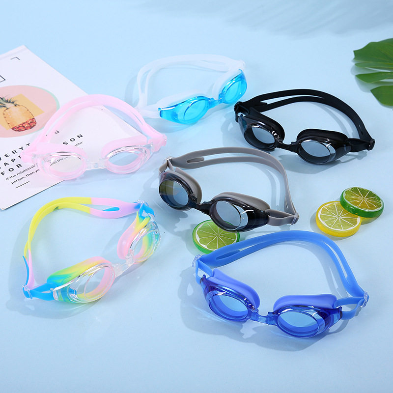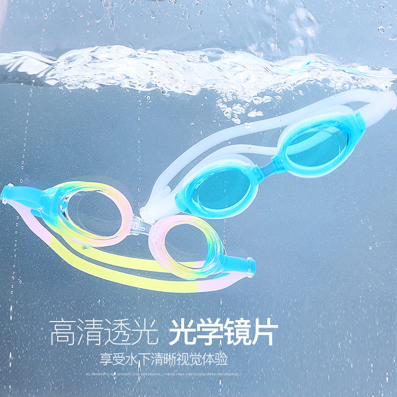 Swimming goggles for adult boys and girls baby HD waterproof fog plated silicone flat light comfortable lake blue swimming glasses
