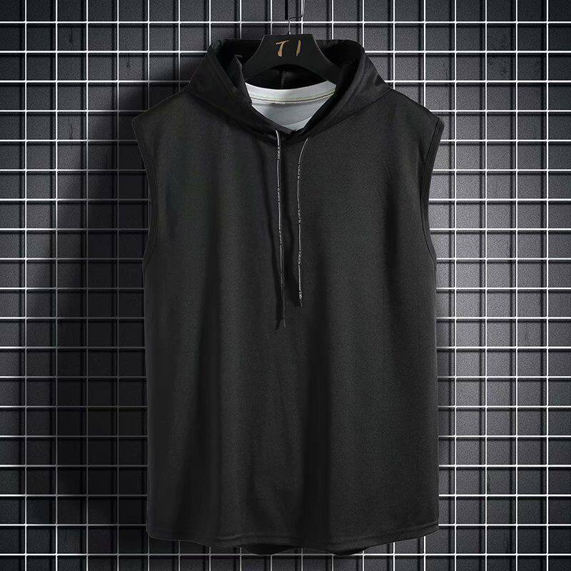 Vest men tide in handsome trend sports shoulder punch jacket loose hat relaxed Korean shirt tide