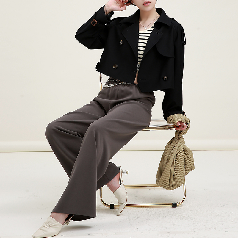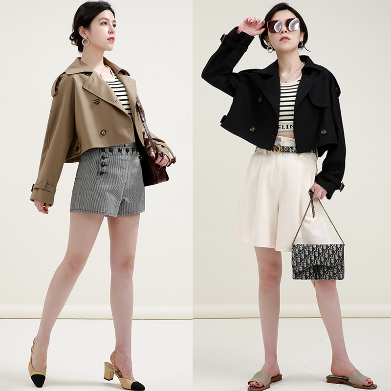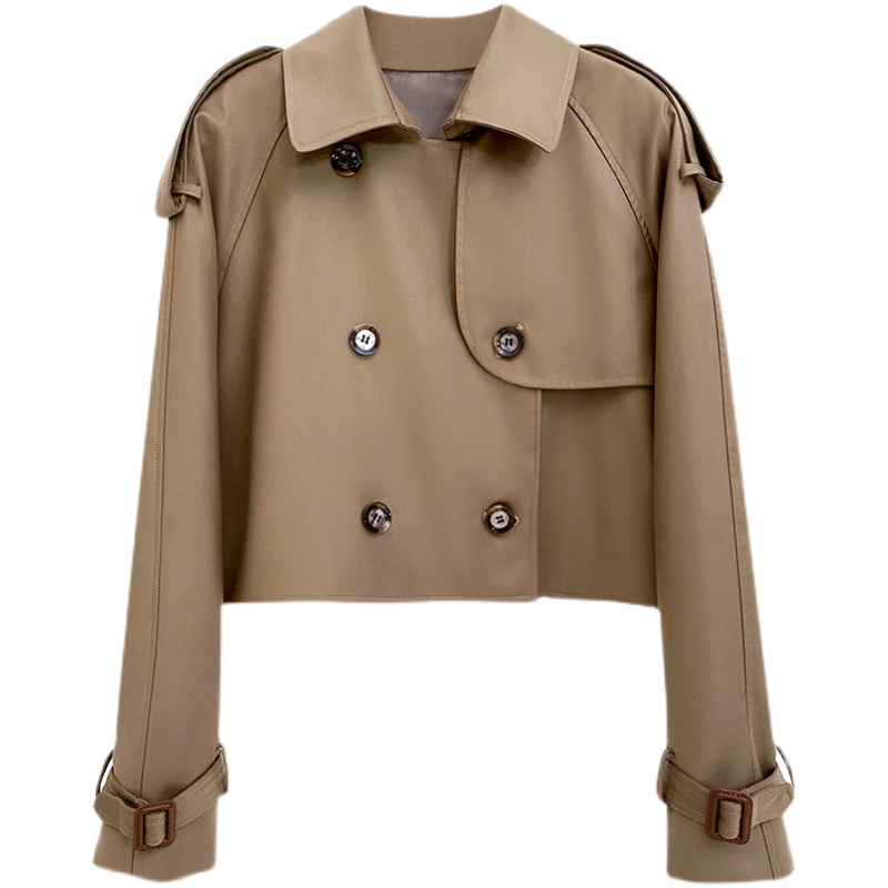 NZ British style double-breasted high-waisted thin and small epaulettes windbreaker women's short coat spring and autumn new