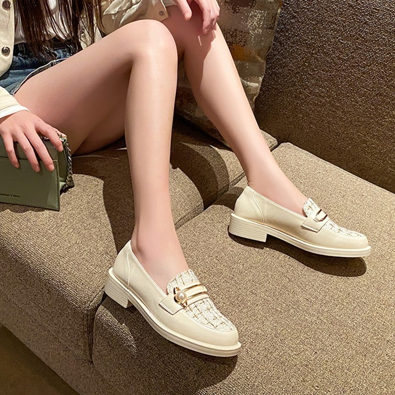 Casual slip-on famous loafers women's 2022 new French summer small fragrance leather shoes 43 large size beanie shoes
