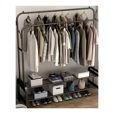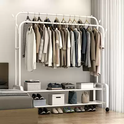 Simple coat rack double pole drying rack floor flat indoor folding hanger household bedroom clothes storage rack