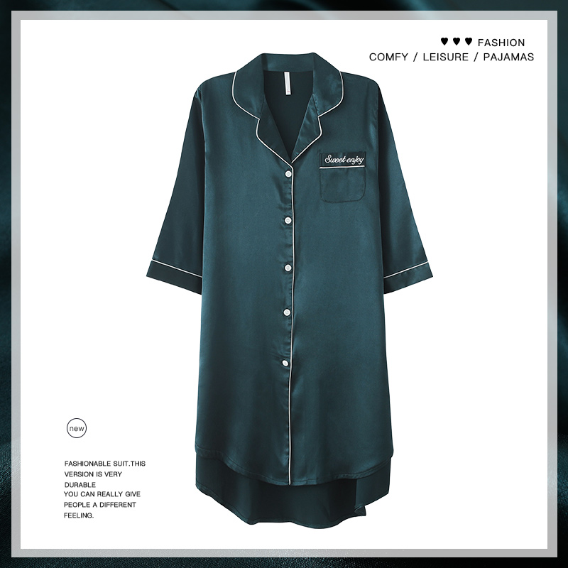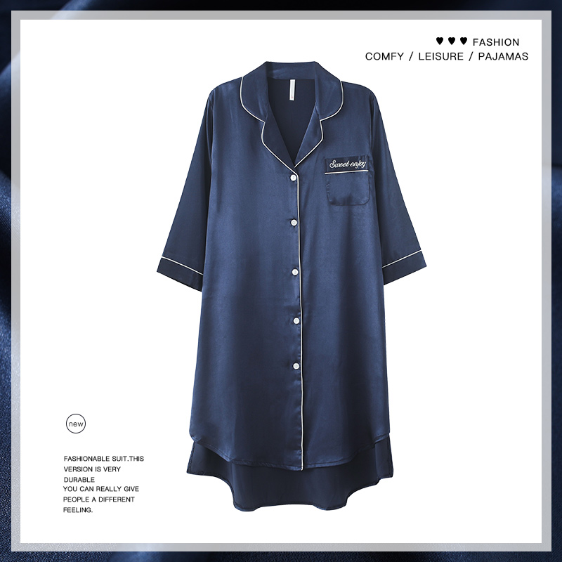 In 2021, new ice sleeping dress female summer sexy boyfriend wind shirt pajamas can be outfitted in summer