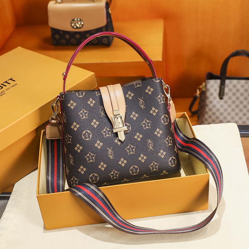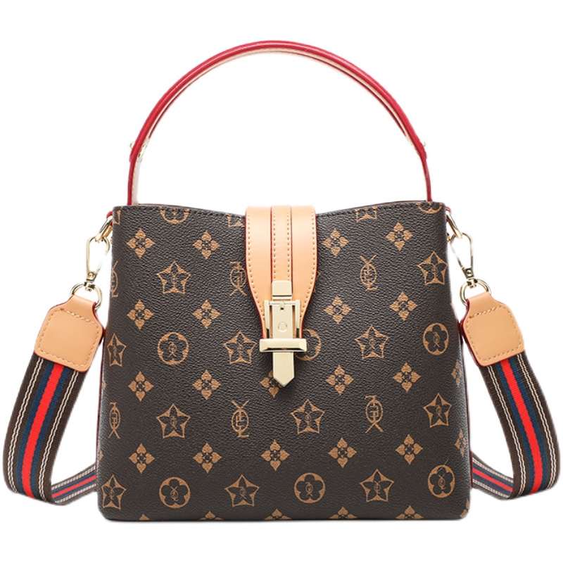FRENCH DUDK WOMEN'S BAG BUCKET BAG INCLINED SATCHEL 2021 NEW OLD FLOWERS SINGLE SHOULDER BAG GENUINE LEATHER FOREIGN HAND HANDBAG BAG WOMAN