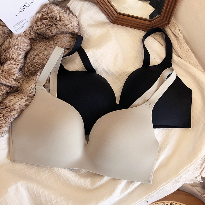 Basic bi into the commuter thin section gathered large chest show small rimless underwear No trace Glossy rimless bra cover