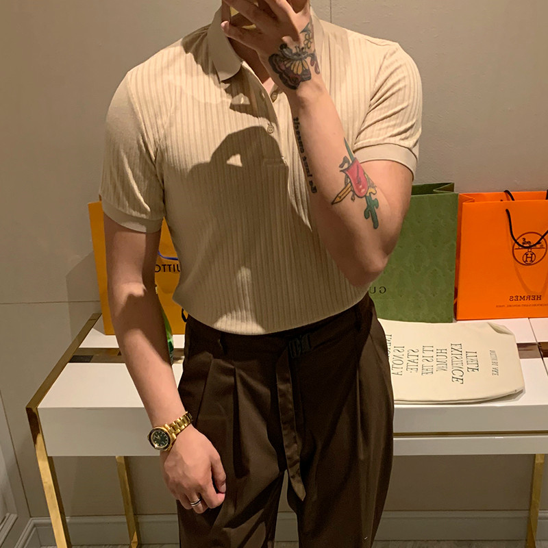 Paul polo shirt men popular vintage stretch half-sleeved top summer clothes light mature wind solid color slim lapels short sleeves men
