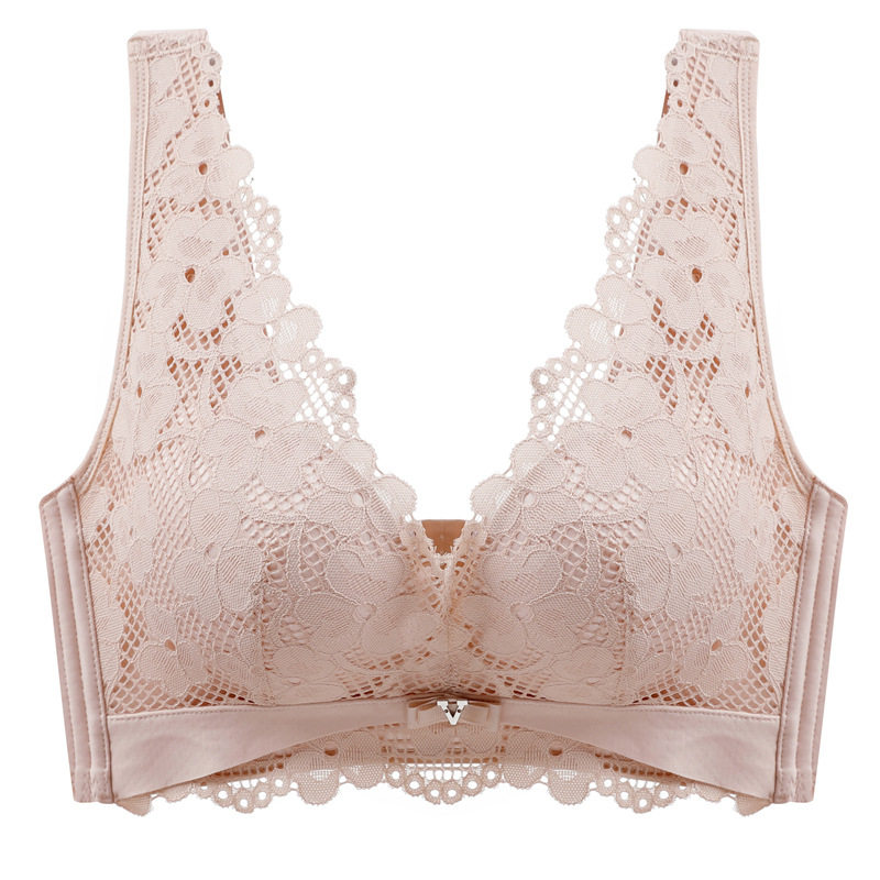 Latex underwear women's hot style lace no steel ring gather vest no trace large size anti-sagging thin bra natal red