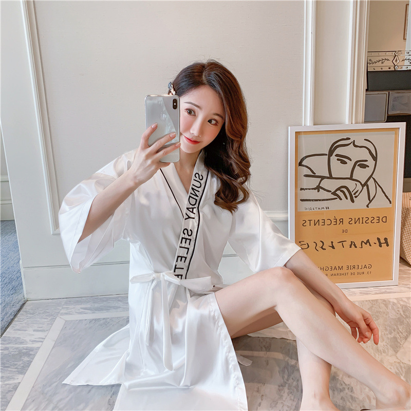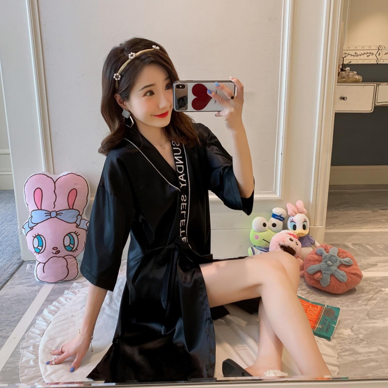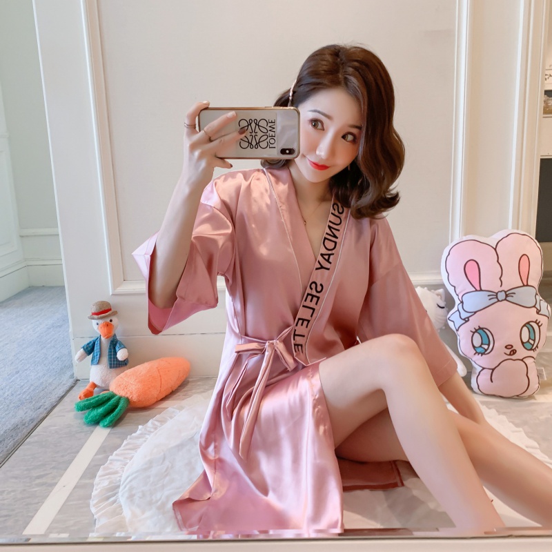 Pajamas women's 2022 new spring, summer and autumn thin imitation silk nightgown suspender skirt two pieces breathable and comfortable suit