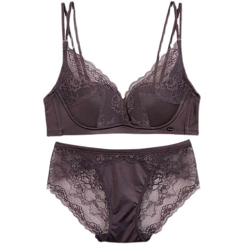 Sexy rimless lace Rabbit ears Upper thin lower thick underwear set Small chest gathered beauty back underwear bra bra