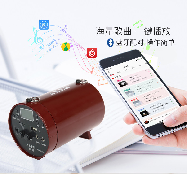 AKER Love Lesson MR3000 Loudspeaker Bluetooth Multi - Function Entertainment Promotion Morning Stand - off Match High Power