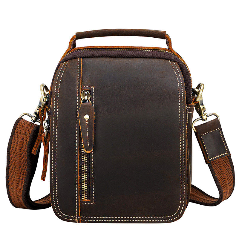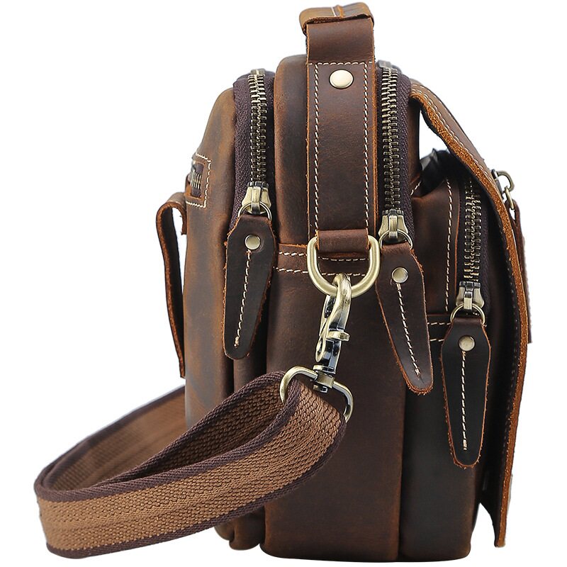Crazy Horse Leather Men's Waist Bag Genuine Leather Retro Messenger Bag Top Layer Cowhide Shoulder Bag Wearing Belt Hanging Bag Handbag