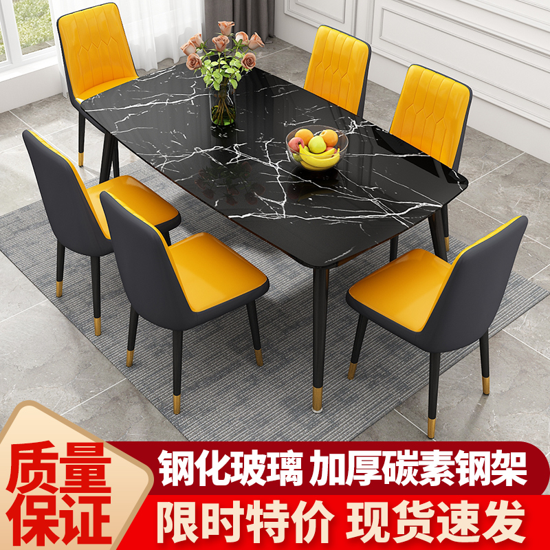 Small family dining table and chairs Combined modern minimalist Home rectangular 4 people 6 people eating table Nordic light lavish dining table