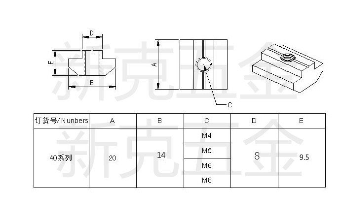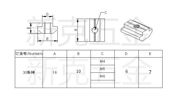 Industrial aluminum extrusion material accessories GB T-type slider nut 30-40 series-M4-M5-M6-M8