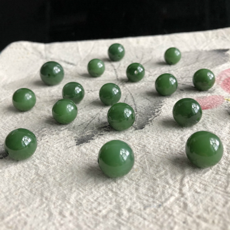 Natural jade bulk pearl Russian material dark color and jade pearl old pit spinach green and more treasure accessories