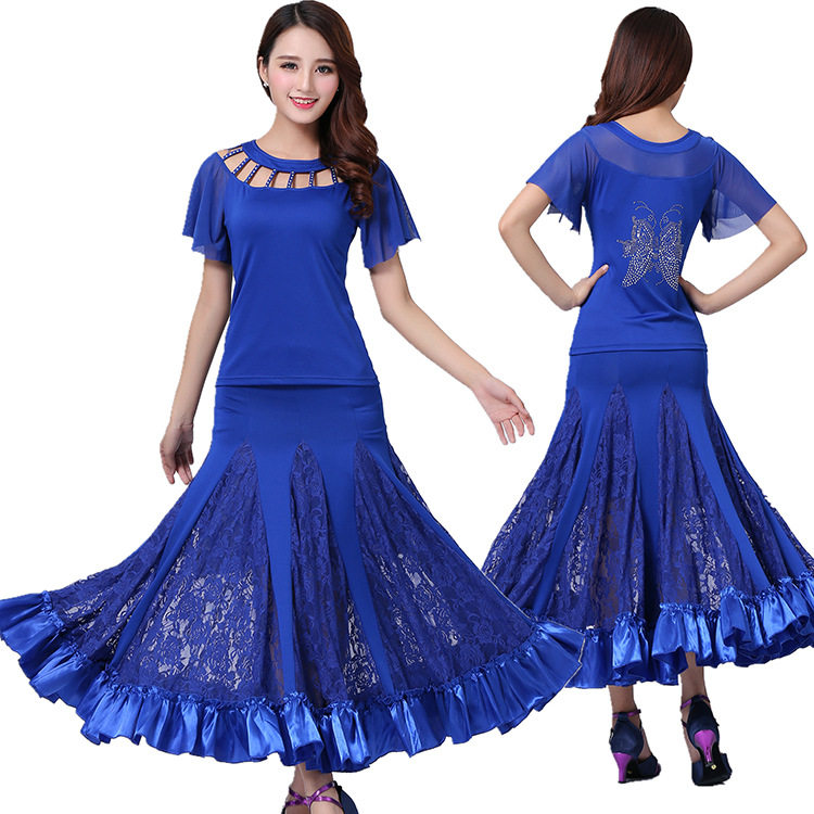 Modern Dance Square Dance Competition Costume Bell Sleeve Dance Performance Costume Set Social Dance National Standard Dance Skirt