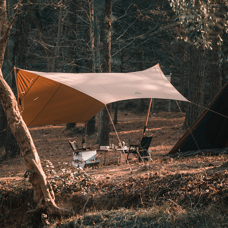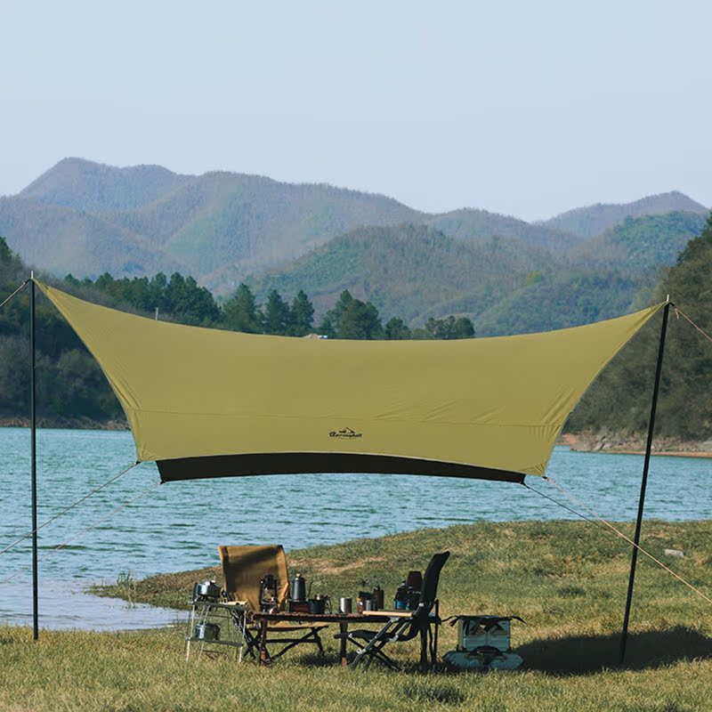 Outdoor camping cotton fabric large sky screen tent awning anti-sunscreen Sunscreen Folded Hexagon Butterfly Family Poly