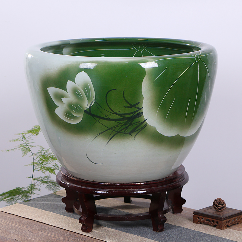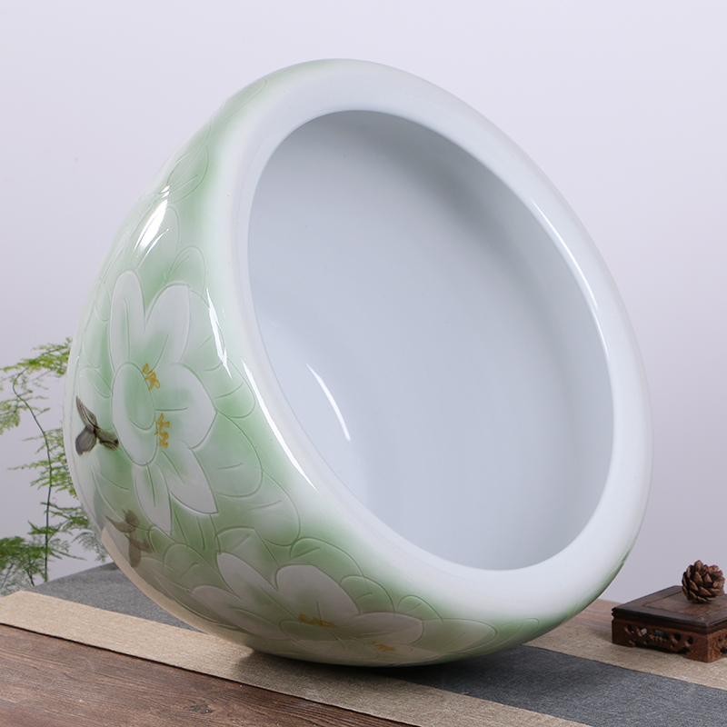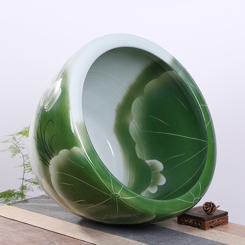 Jingdezhen fish tank ceramic fish basin large water lily lotus tank home koi turtle tank living room floor landscaping