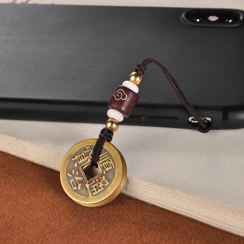 Encryption Plus Coarse Brass Five Imperiale Money Mobile Phone Pendant Accessories Handmade Mobile Phone Hanging Rope Hanging Pendant Ornaments Ancient Wind Short Men And Women