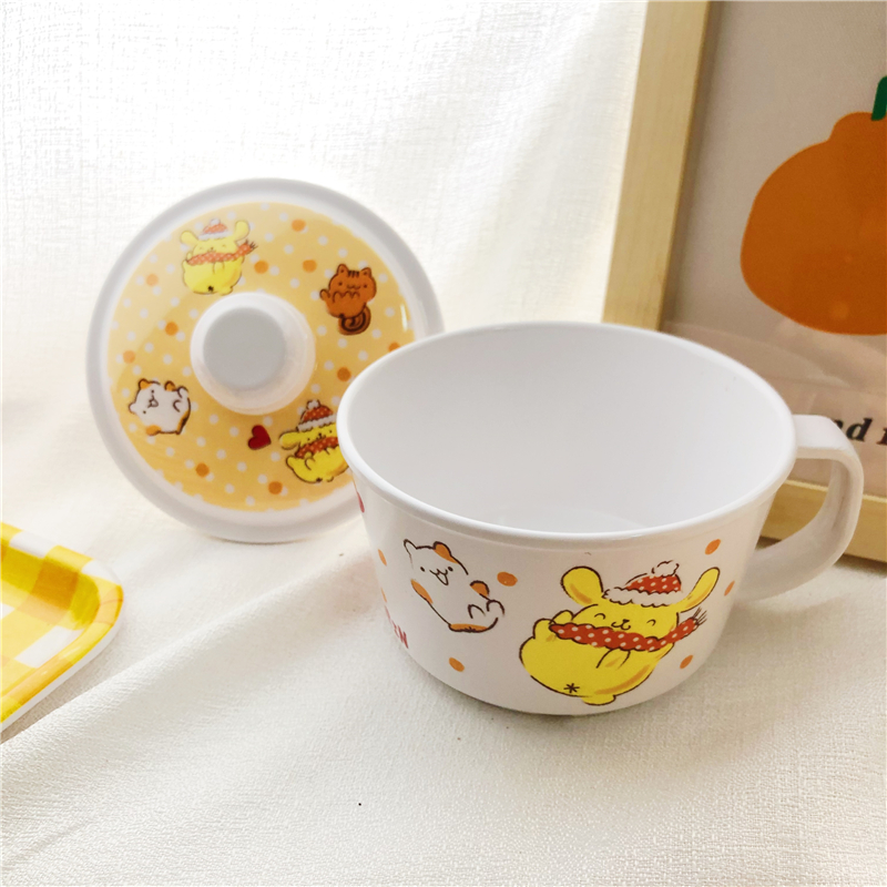 Cartoon bowl with A5 melamine environmental protection instant noodle bowl soup bowl with handle and lid instant noodle cup children's baby anti-fall cute