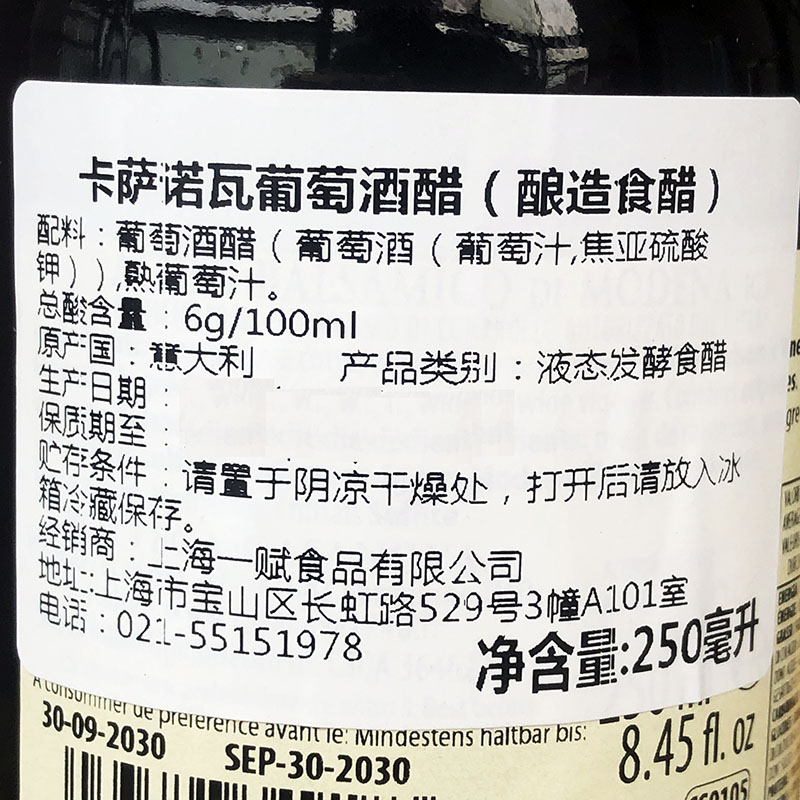 Italian original imported Casanova wine vinegar 250 ml brew Vinegar Raw Oyster Large Brake Crab with vinegar