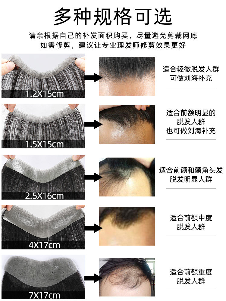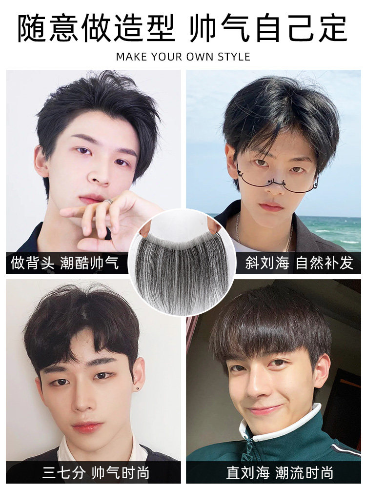 Hairline Wig Sticker Forehead Invisible Men's Replacement Hairline Real Hair Sticker Fake Liu Hai Male M-type Wig Replacement