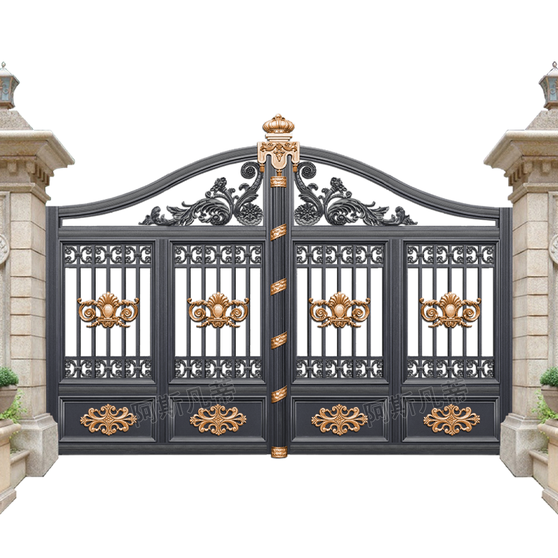 Aluminum Art Villa Gate Aluminum Alloy Pan double door Courtyard Gate Rural Yard Wall Electric Pair Open Door