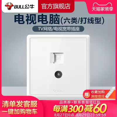 Bull socket Flagship switch socket Computer TV six types of wire type socket 86 type gigabit network G36 white