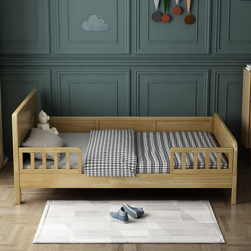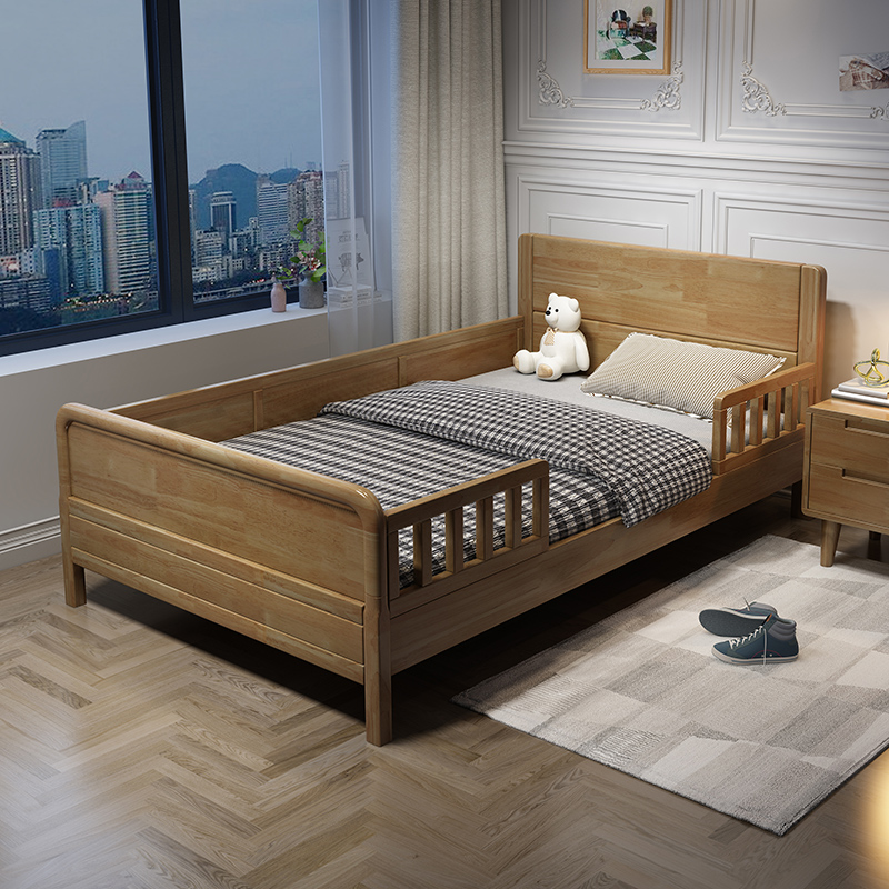 Abbreviated children's solid wood bed with guardrail stitching bed 1 2m boy and girl bed 1 5m single double child bed bedroom
