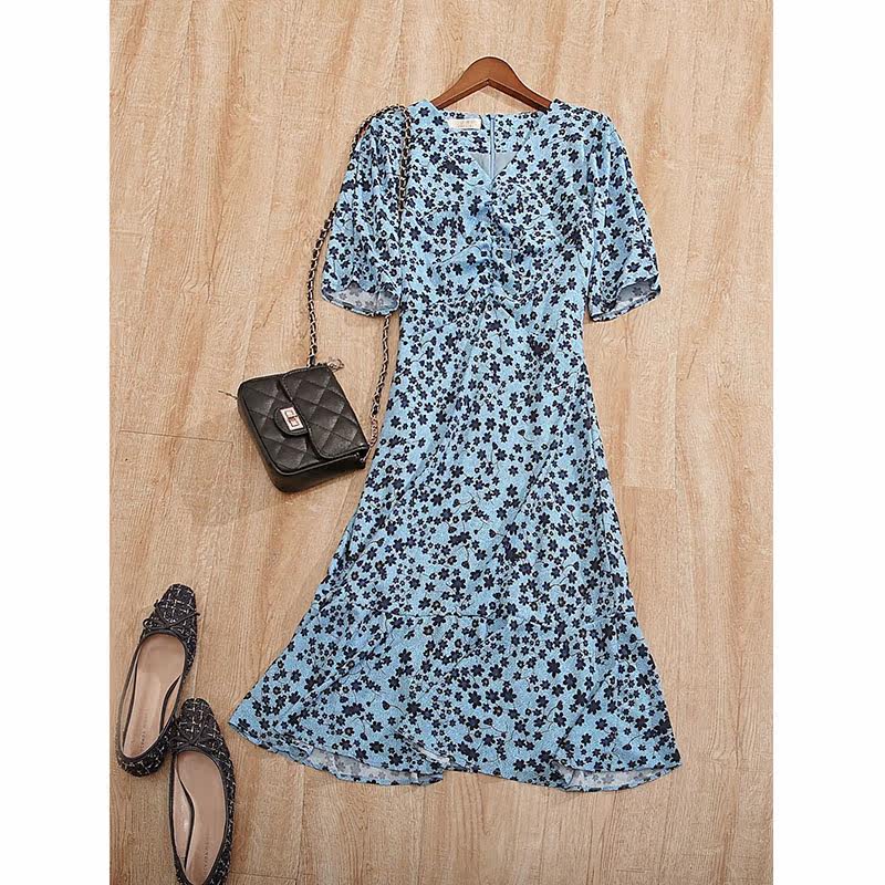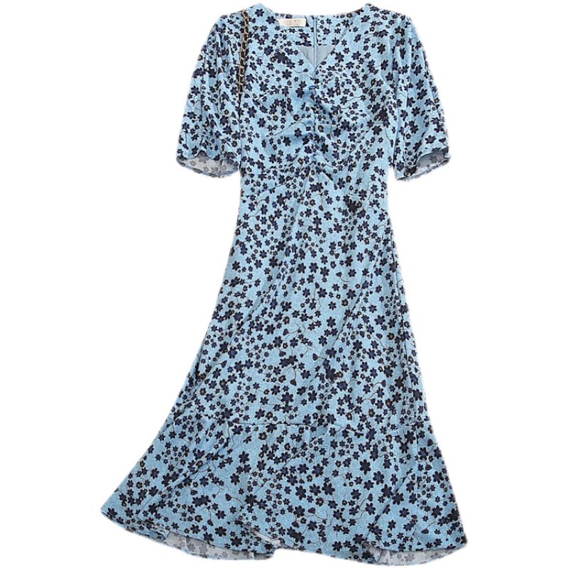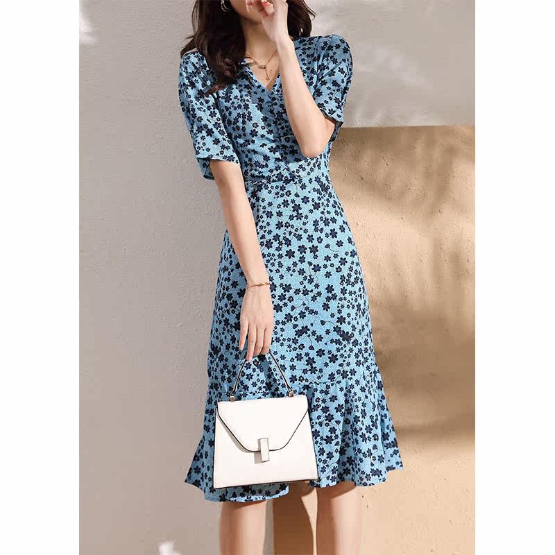 Mularsa method Balloon Flower Tea Hysteria Woman 2022 Summer collection Waist Temperament Slim V Collar Printed Fish Tail Skirt