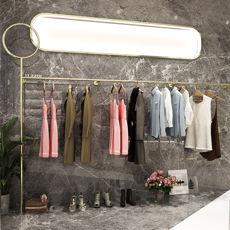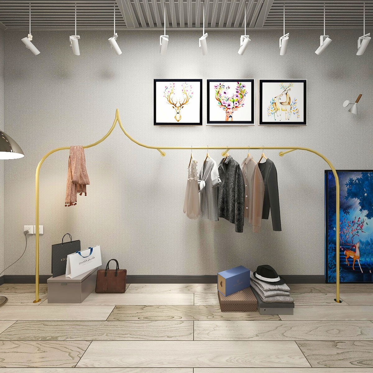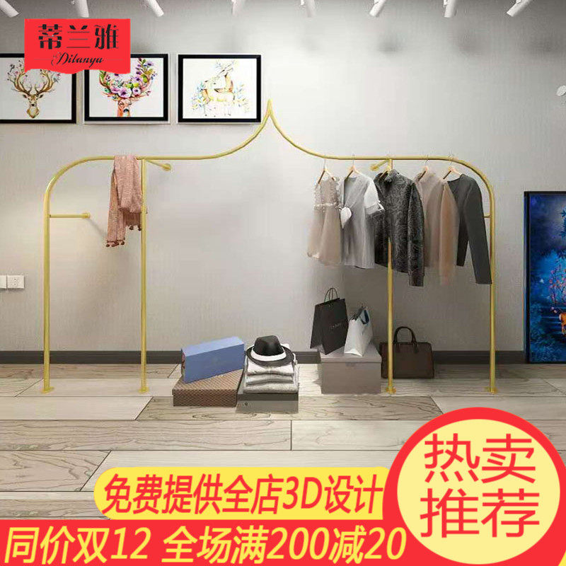 Clothing store hanger display rack floor-to-ceiling gold minimalist men's and women's clothing store combination shelf display clothes rail