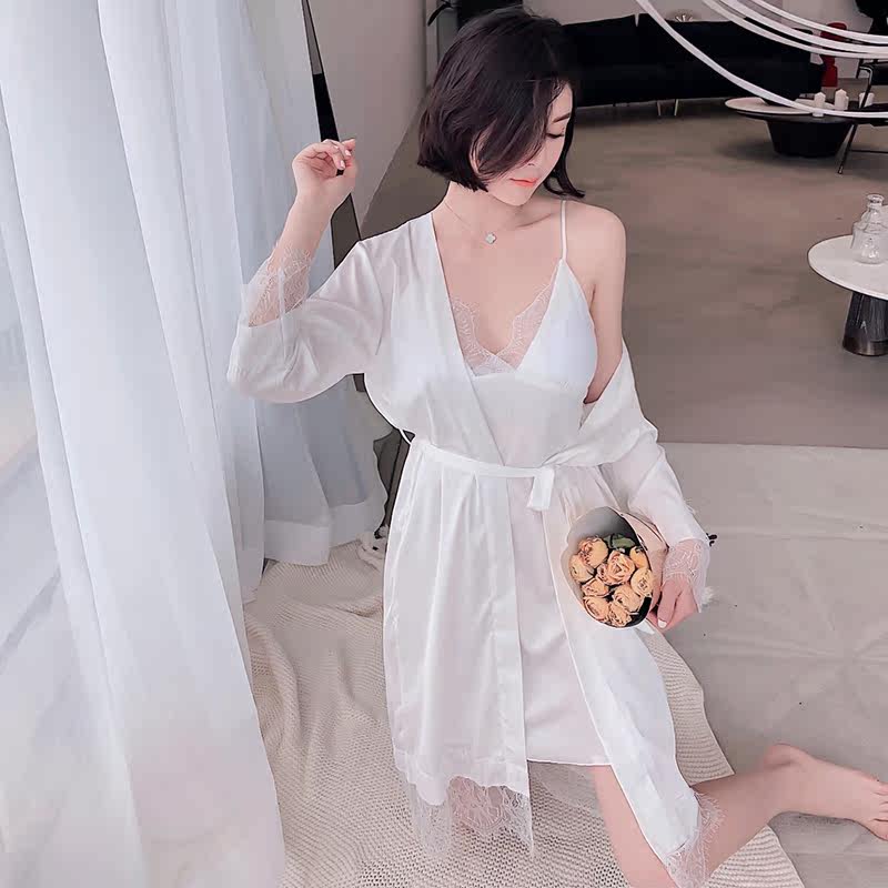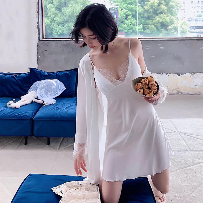 Summer Sexy Sleepwear Lady Lace Harness Pyjamas Sleeping Dress Sleek Suit Korean Version Pure Color Enchantment Fashion House Conserved Spring