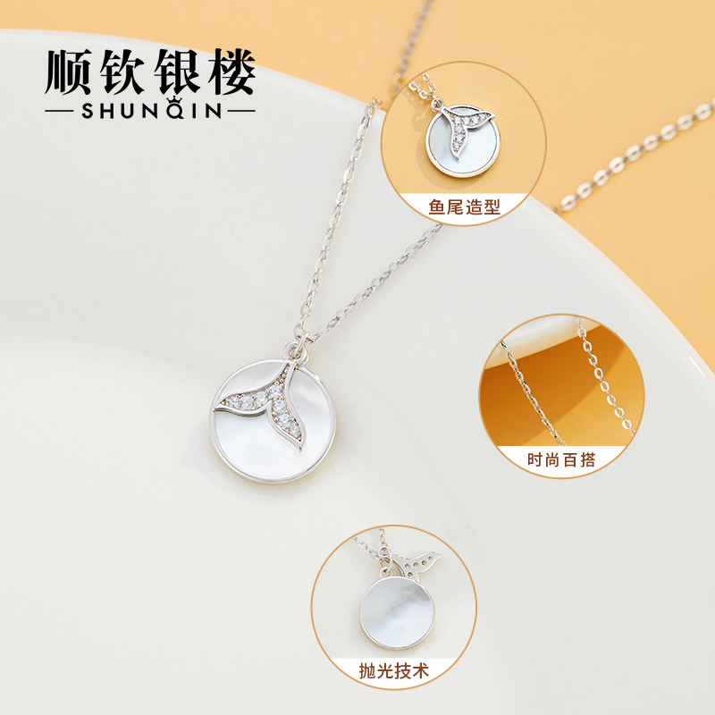 Shun Chin Silver Building Pure Silver Necklace Woman Fairy Gas S925 Silver Fish Tail Necklace Ins Small Crowddesign Light Extravagant Silver Pendant