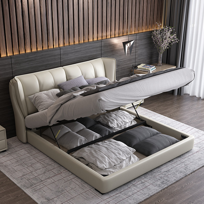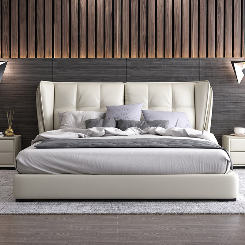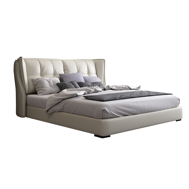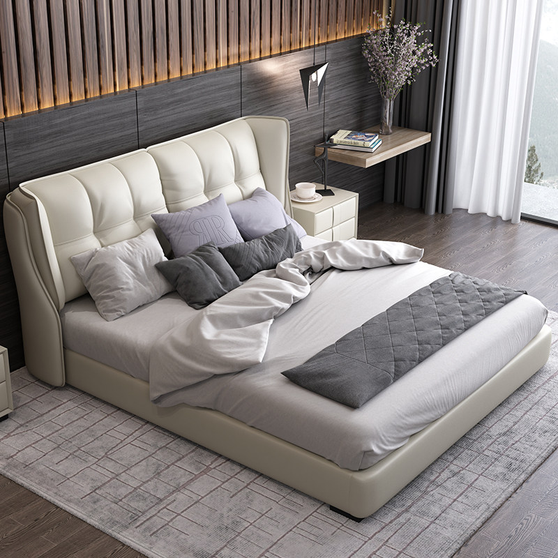 Nordic leather bed light luxury modern simple 1 8m double bed soft pack small family type 1 5m master wedding bed