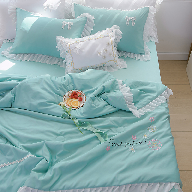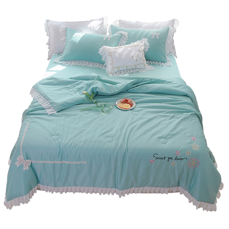 Air-conditioning quilt summer cool quilt four-piece set ice silk summer princess style girl single double real silk water machine washable thin quilt
