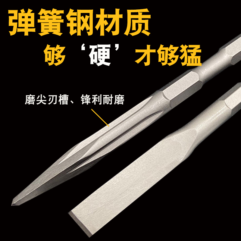 Small electric pick chisel electric hammer drill shock drill bit widening lengthened ultra-thin flat chisel hexagonal soil pick head notching shovel head