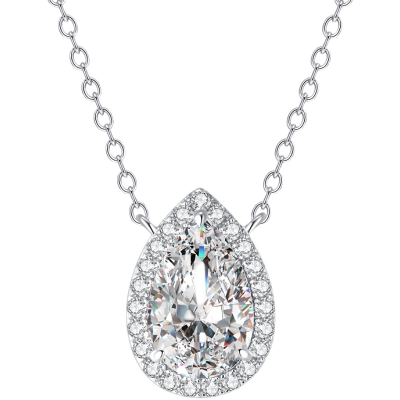 18K white gold necklace day made of tear platinum gold neck necklace oval drop mosanstone drilling carat necklace woman lock bone chain