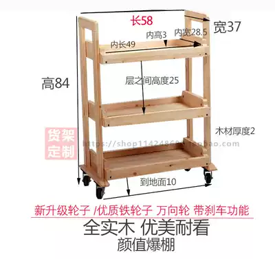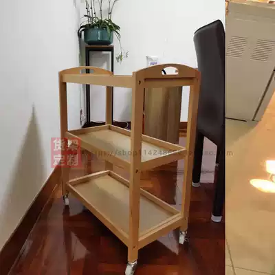 Solid wood oil painting tool cart three-layer belt brake art Workbench studio painting table paint storage shelf