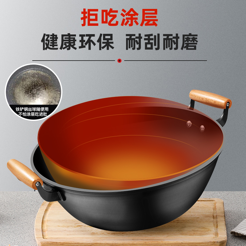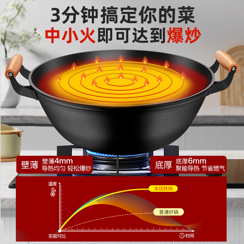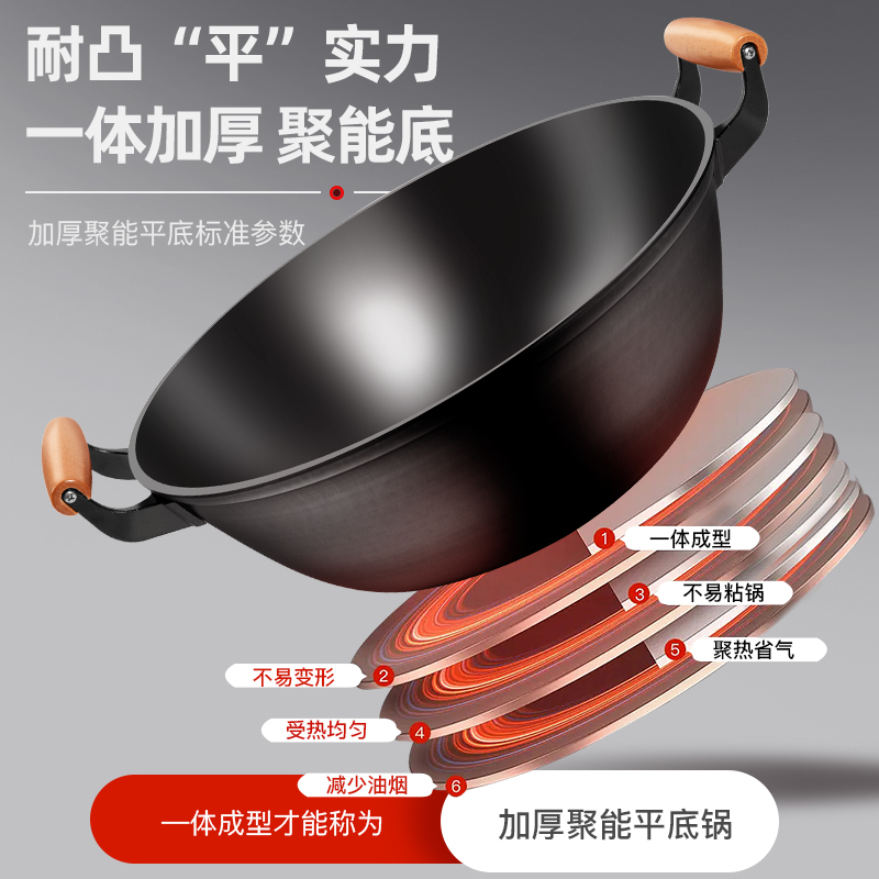 Thickened Old-fashioned Iron Pan Deepen flat frying pan Home Double ear cast iron frying pan Special non-stick large pot-Taobao